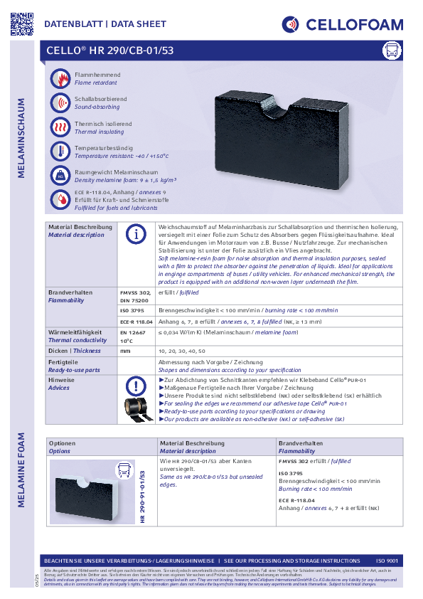 yapıştırılmıştır. Cello® HR 290 /CB-01/53 yağ su ve yakıta karşı çok iyi direnç sağlar.
