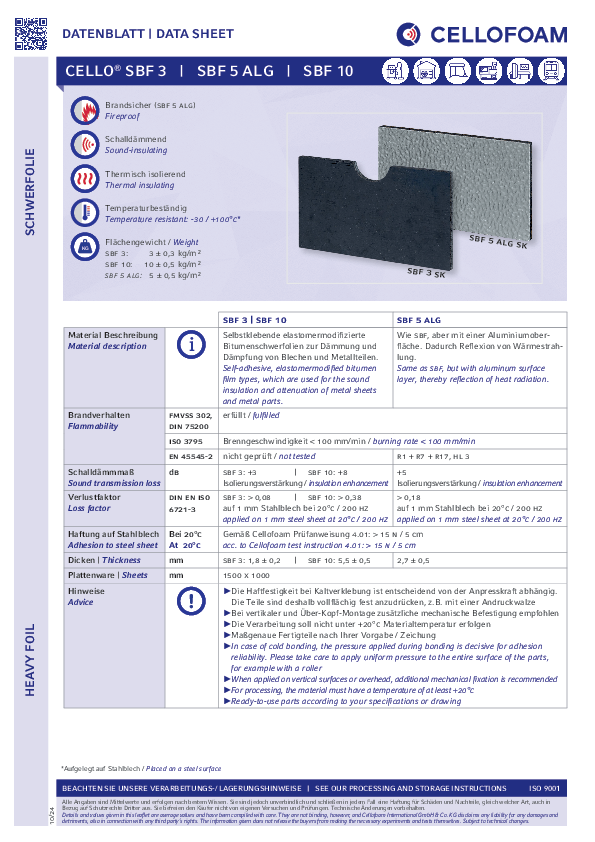 Bitumenschwerfolie mit Aluminiumoberfläche zur Dämmung und Dämpfung von Blechen und Metallteilen. Cello® SBF ALG überzeugt durch seine hohe Brandfestigkeit und seiner Reflexion von Wärmestrahlung aufgrund der Aluminiumoberfläche.